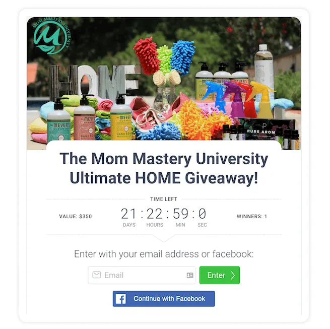 Giveaways are the most cost-effective way to grow your audience by encouraging your visitors to share your giveaway. The more friends who enter the more entries they earn and more emails for you.